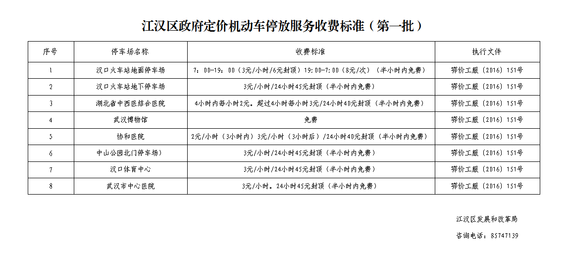 江汉区政府定价机动车停放服务收费标准(第一批)