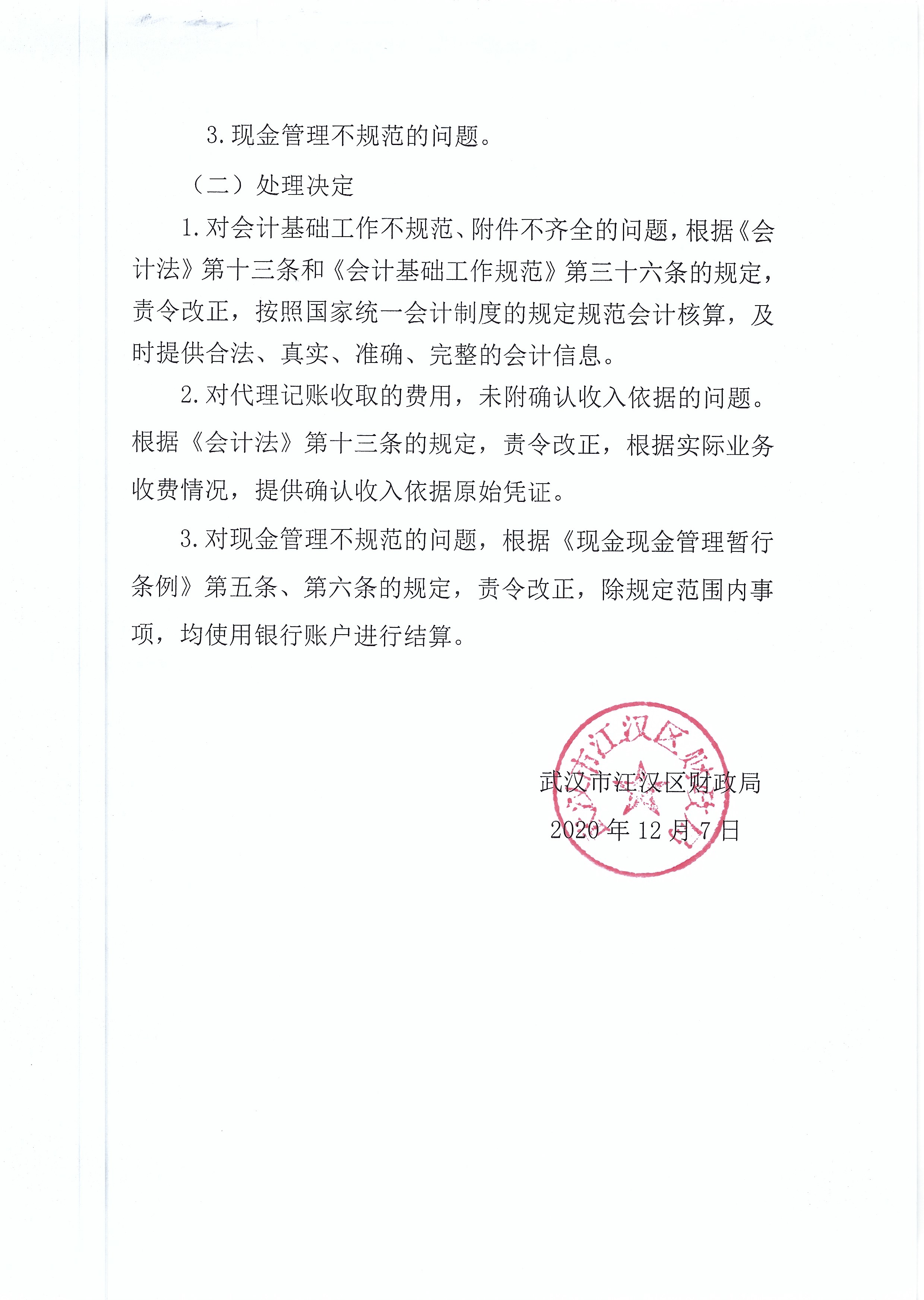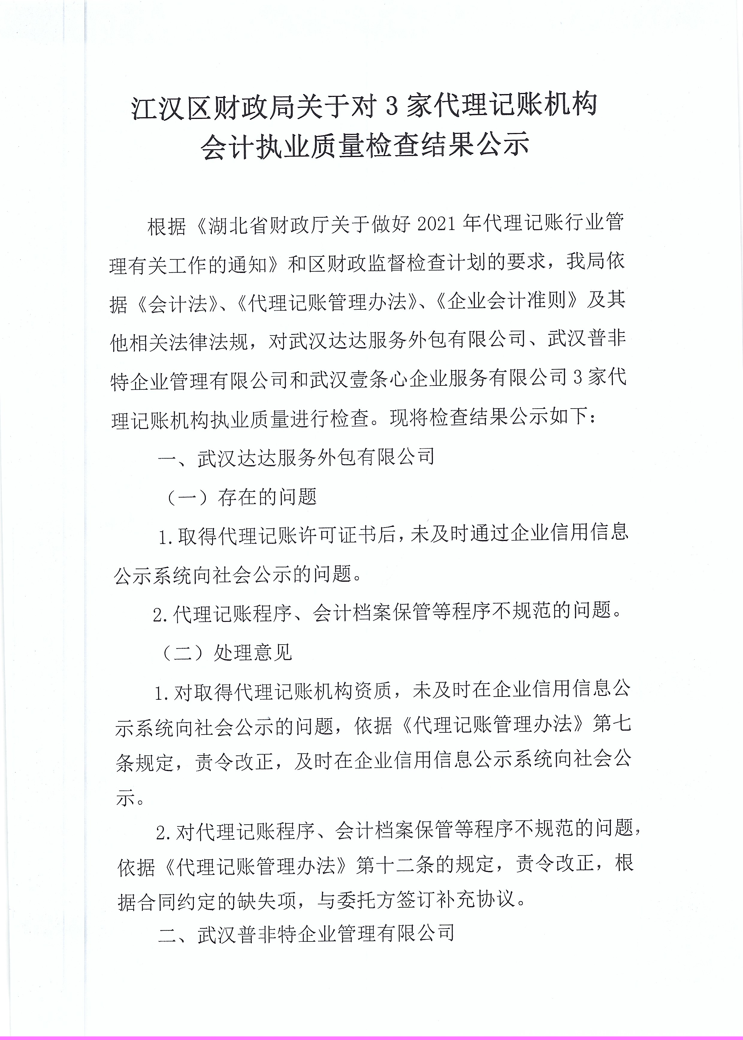 江汉区财政局关于对3家代理记账机构会计执业质量检查结果公示