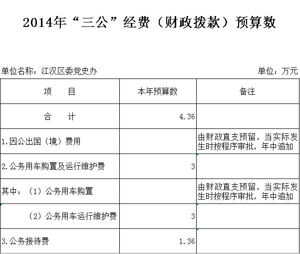 2014年部门财政拨款资金安排“三公”经费预算4.36万元。具体情况如下: