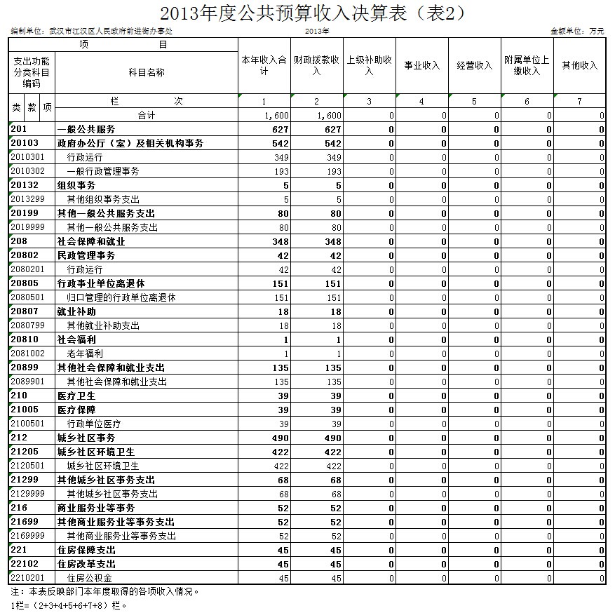 二、武汉市江汉区人民政府前进街办事处2013年度公共预算收入支出决算总表