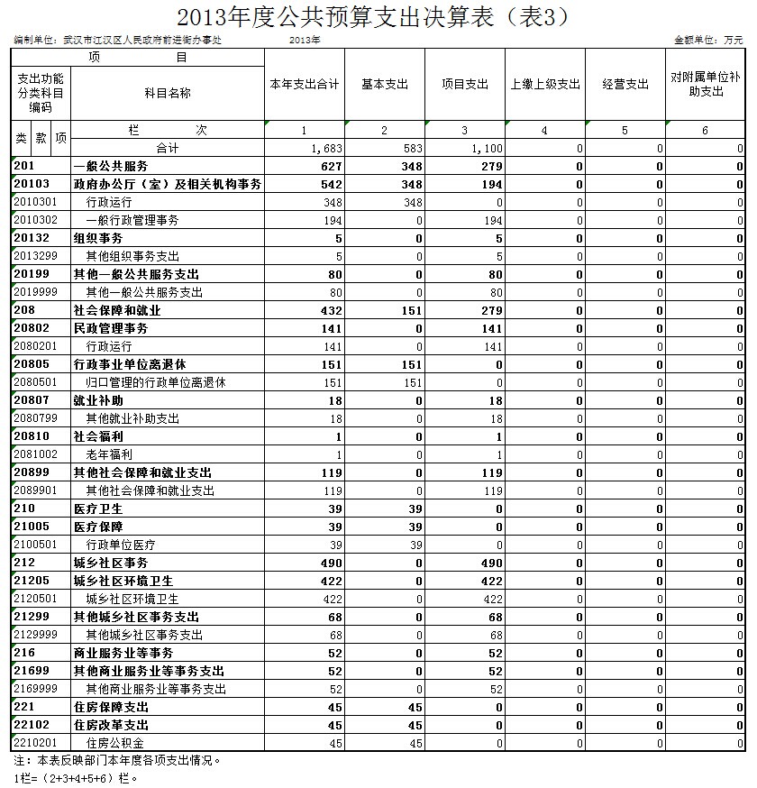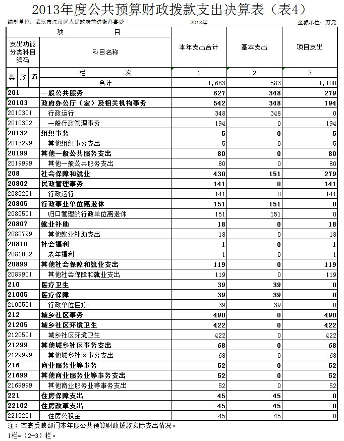 四、武汉市江汉区人民政府前进街办事处2013年度公共预算支出决算表