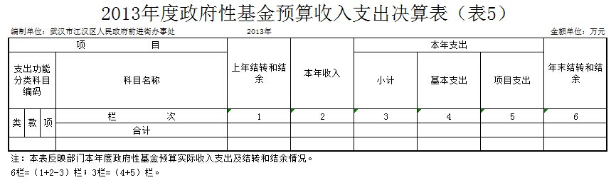 六、武汉市江汉区人民政府前进街办事处2013年度政府性基金预算收入支出决算表