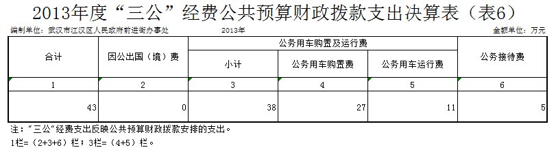 武汉市江汉区人民政府前进街办事处2013年度“三公”经费公共预算