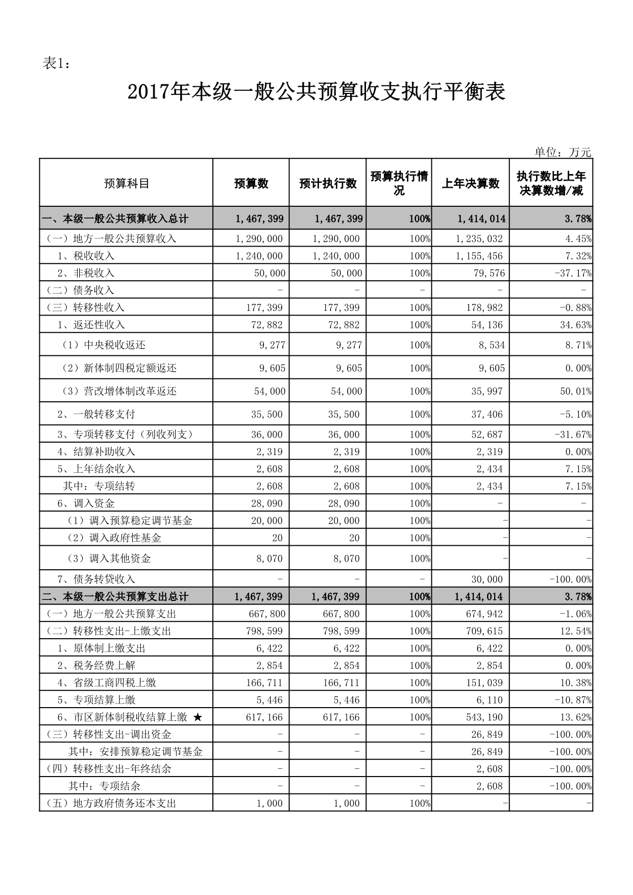 一、2017年预算执行情况