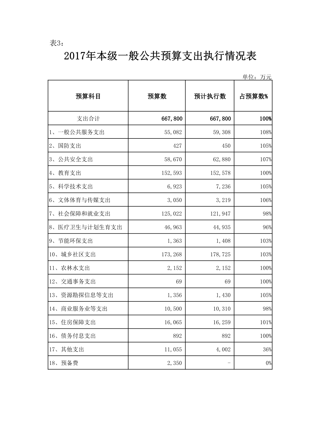 3、公共安全支出62,880万元,为预算的107%;