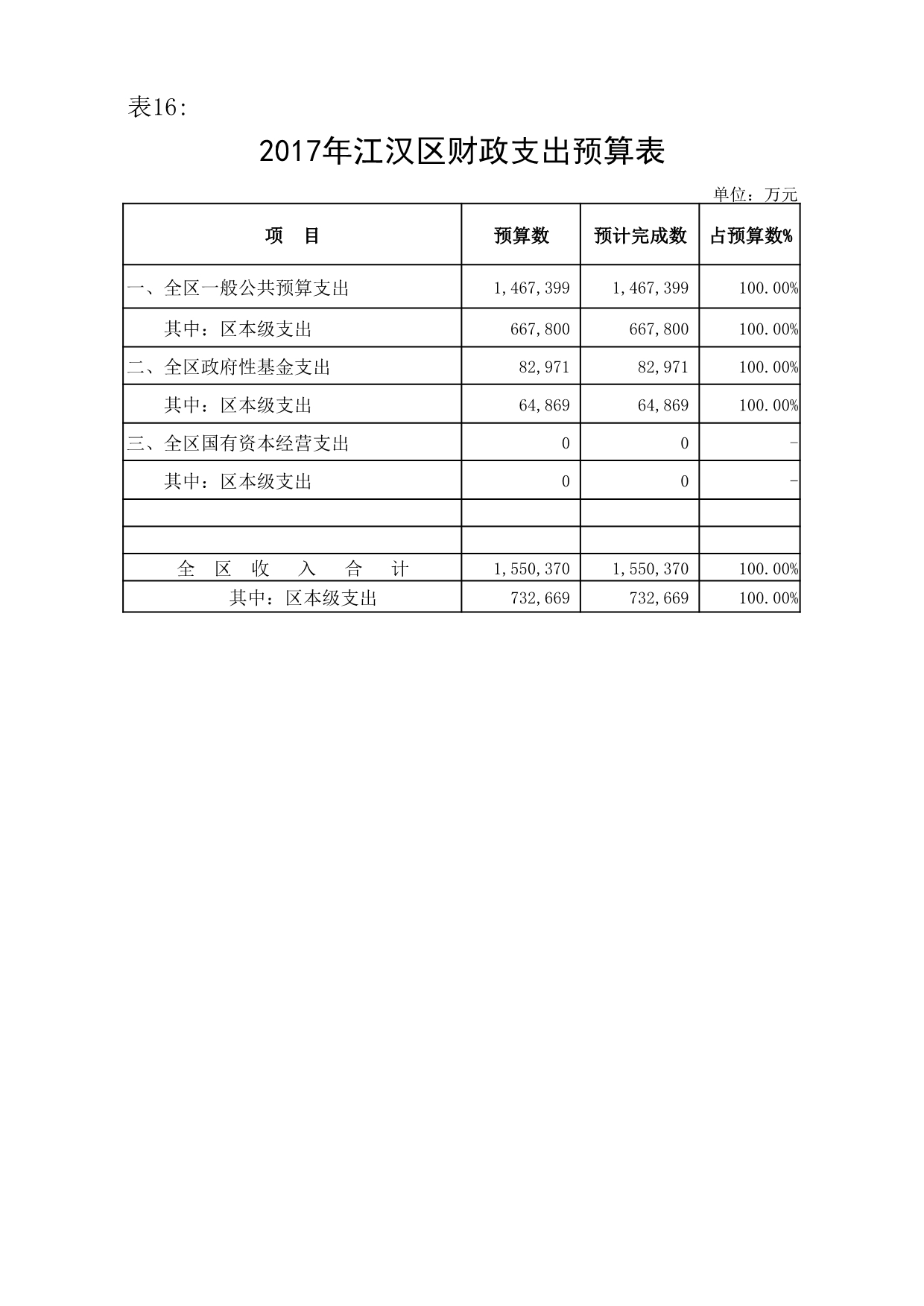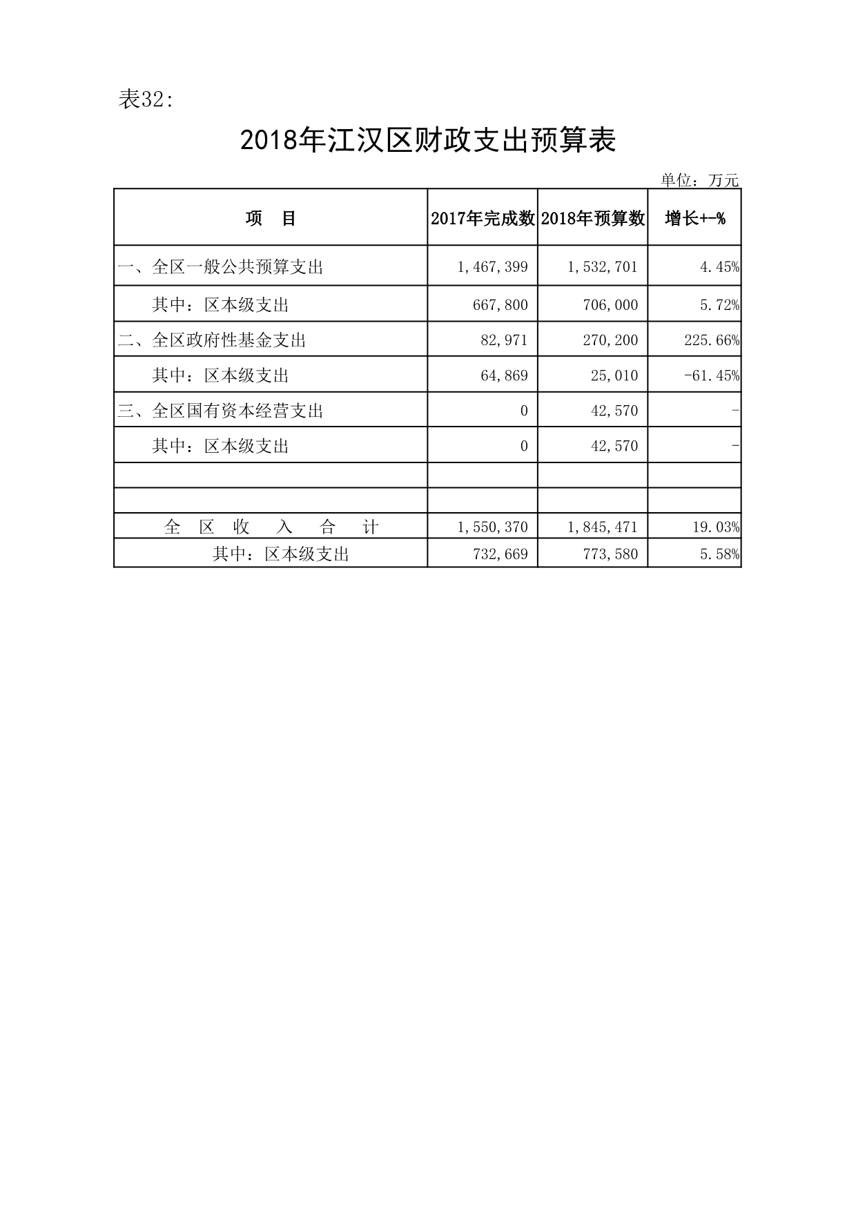 江汉区2017年预算执行情况和2018年预算草案的报告
