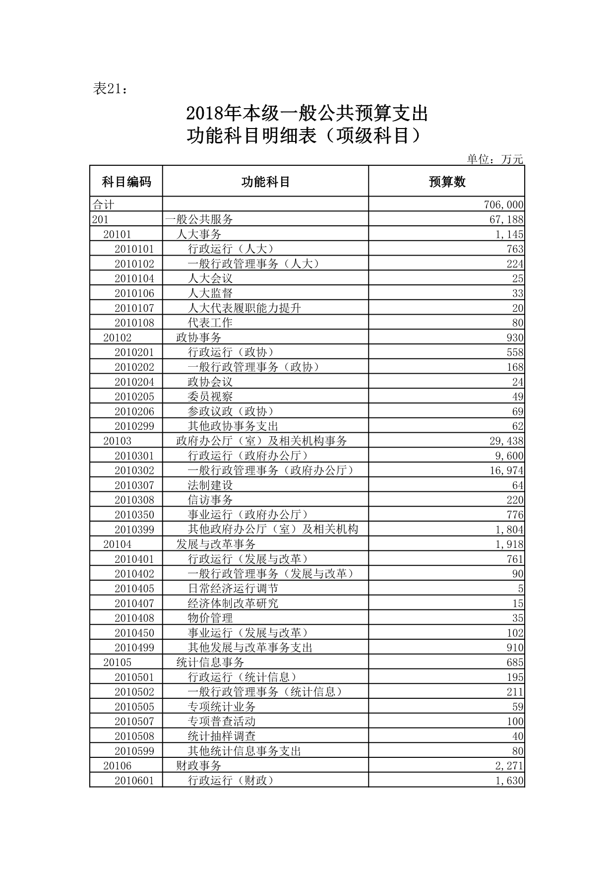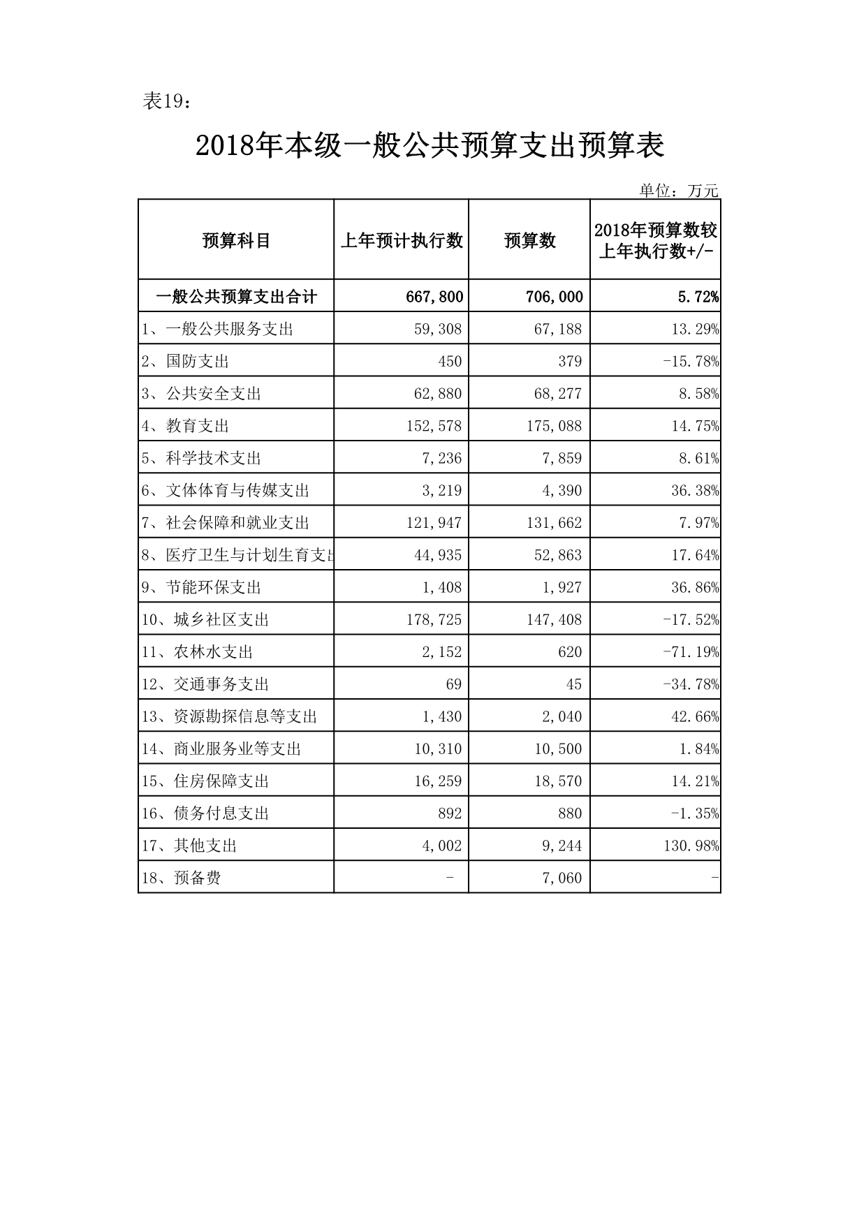 18、预备费7,060万元, 占地方一般公共预算支出的1%。