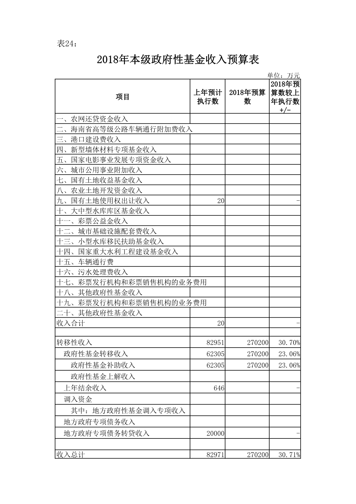 2018年,本级政府性基金预算收入总计27.02亿元,其中:本级政府性基金预算收入0亿元;转移性收入27.02亿元(含土地出让收入26.9亿元、彩票公益金收入0.12亿元)。