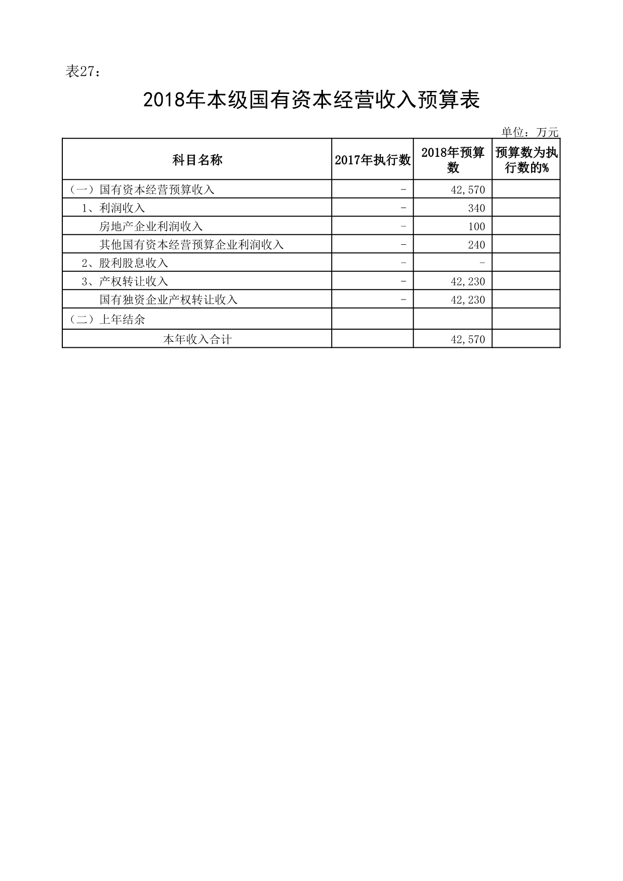 2018年,我区首次编制国有资本经营预算,全年国有资本经营收入预算为4.26亿元,包括:上缴利润收入340万元;国有产权转让收入4.22亿元,主要为房屋产权转让收入。