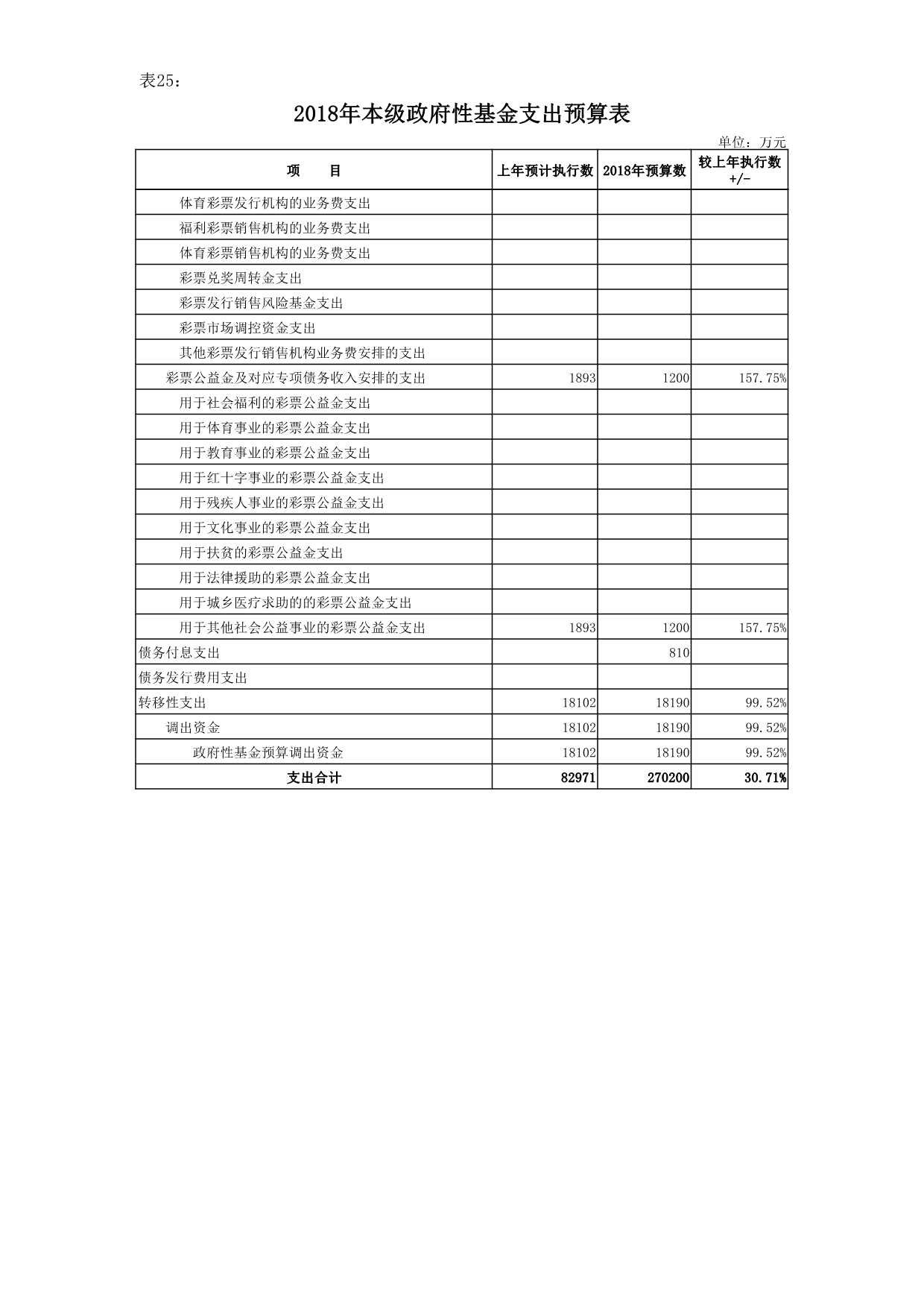2018年,本级政府性基金预算支出总计27.02亿元,其中:本级政府性基金预算支出25.2亿元(含土地征收成本25亿元、区福利院设施改造支出0.12亿元、土地专项债券利息支出0.08亿元);安排预算稳定调节基金1.82亿元。