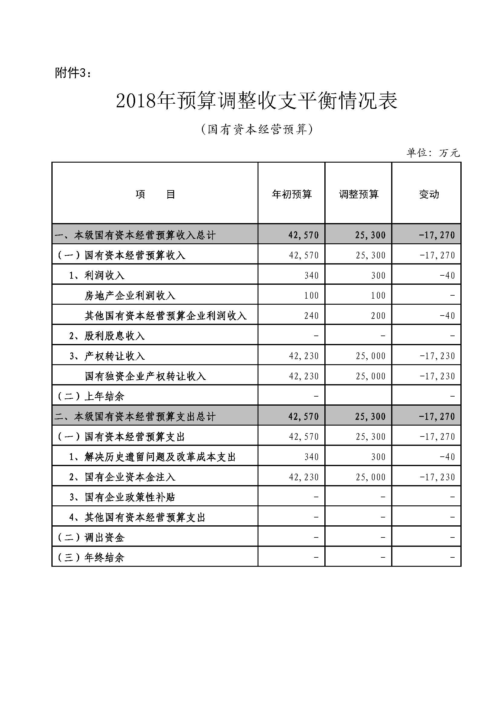3、2018年预算调整收支平衡情况表(国有资本经营预算)
