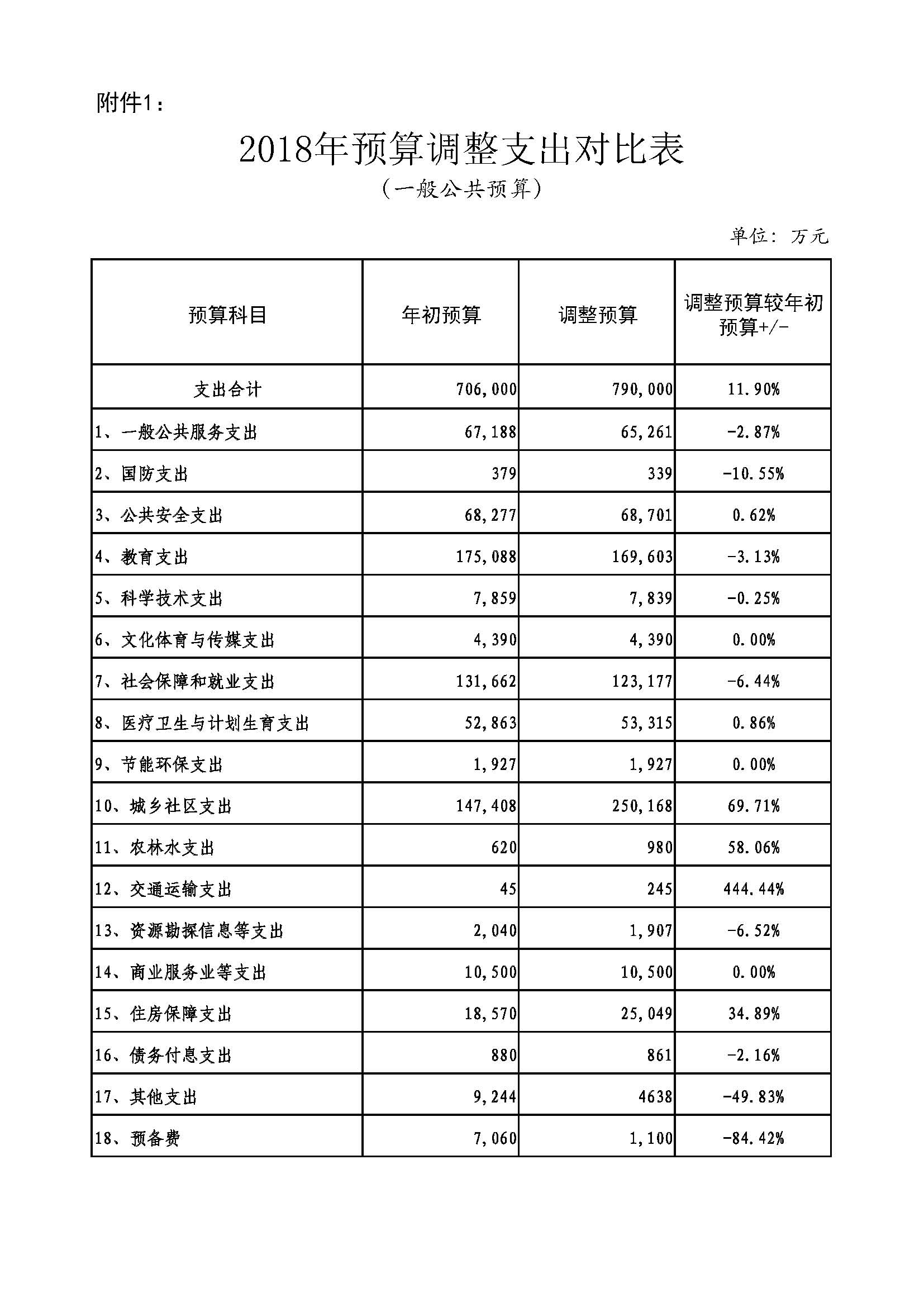 附件:1、2018年预算调整支出对比表(一般公共预算)
