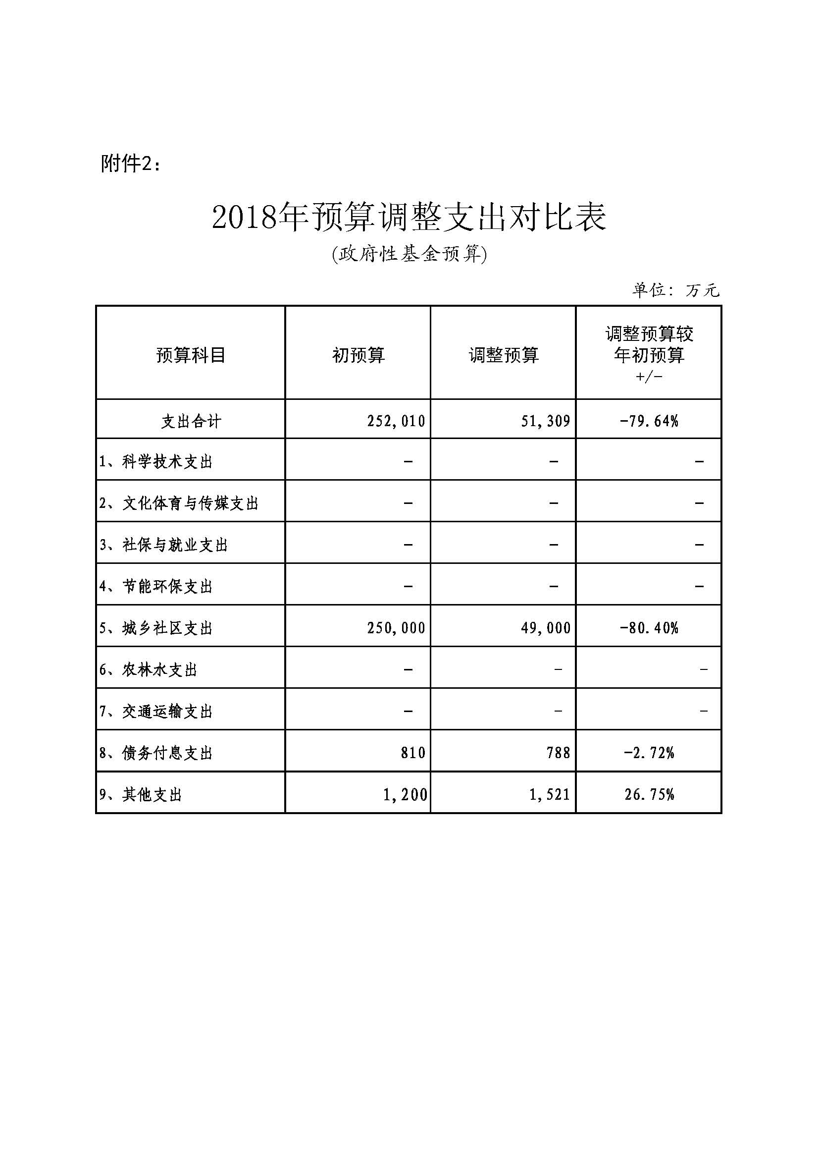 2、2018年预算调整支出对比表(政府性基金预算)
