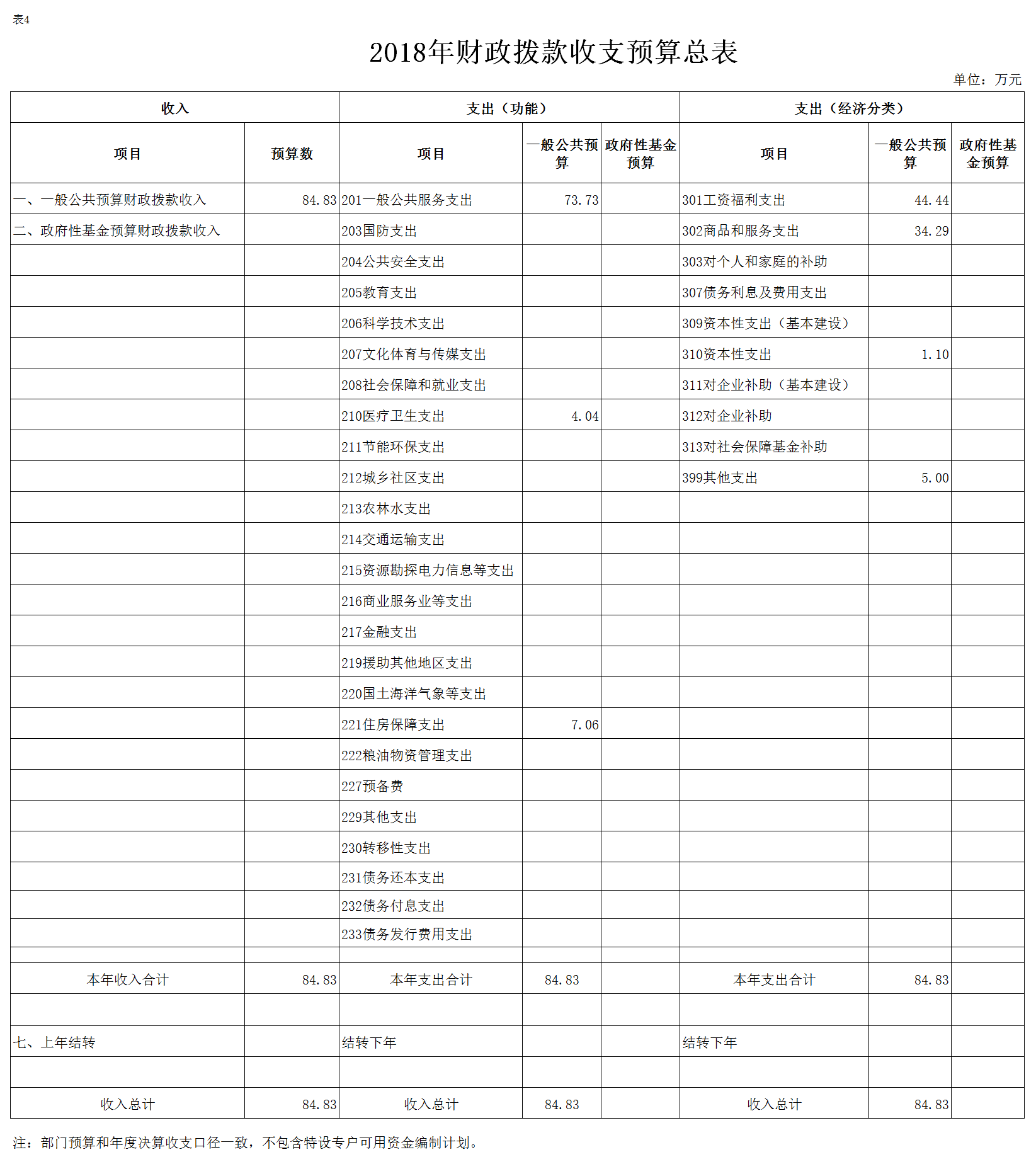 2018年一般公共预算财政拨款(补助)预算数84.83万元,安排情况如下: