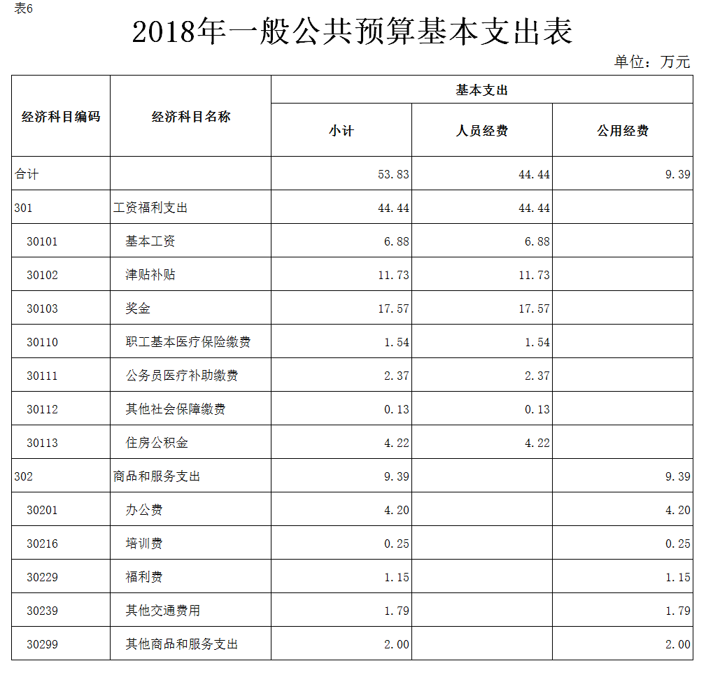 (一)基本支出53.83万元,较2017年年初预算减少12.37万元,减少19.01%,主要原因是:人员变动,计算口径变化。主要用于: