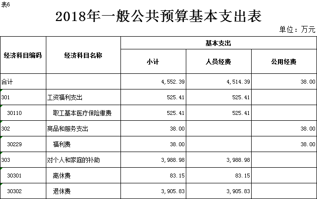 (一)基本支出 4552.39 万元,较2017年年初预算增加240.01 万元,增长 5 %,主要原因为离退休人员经费的增加。