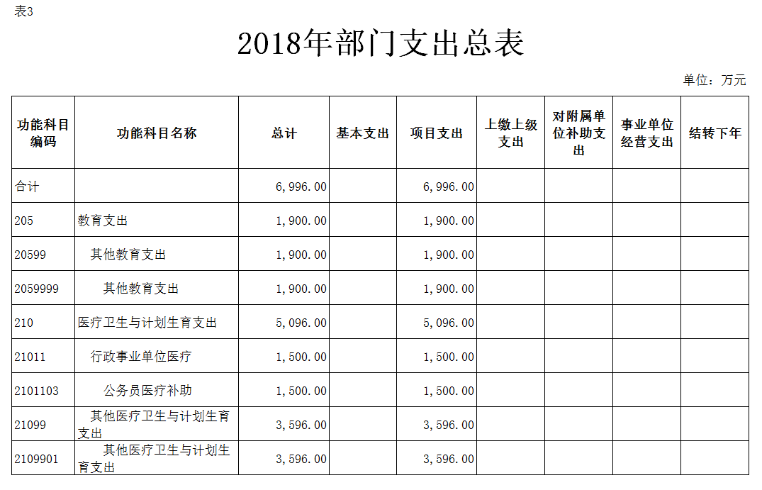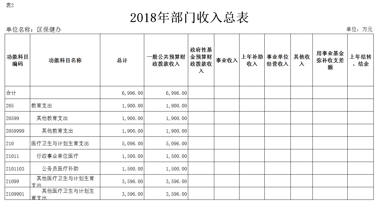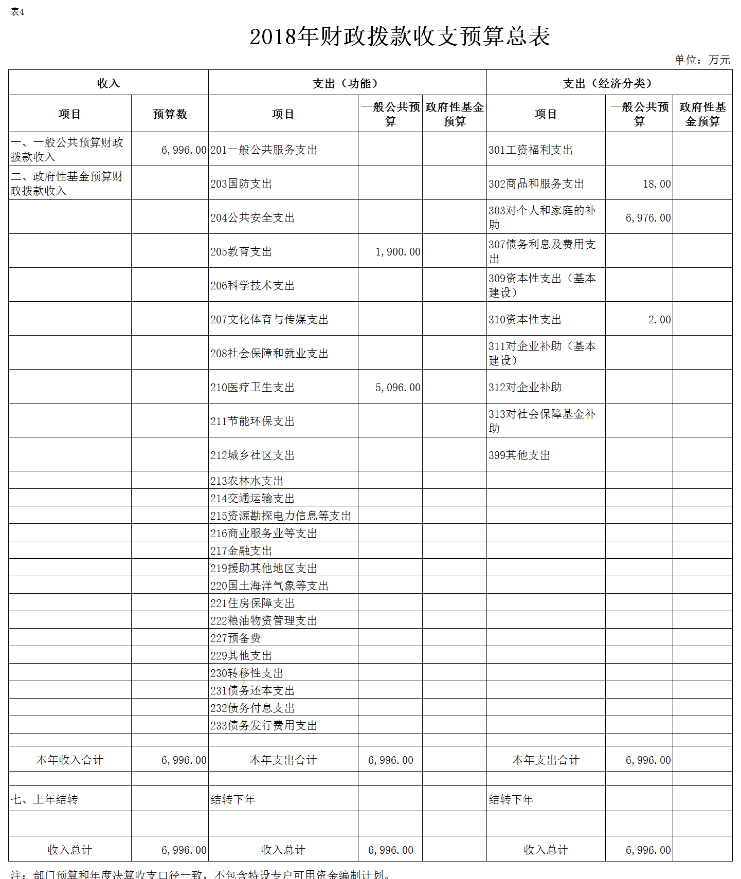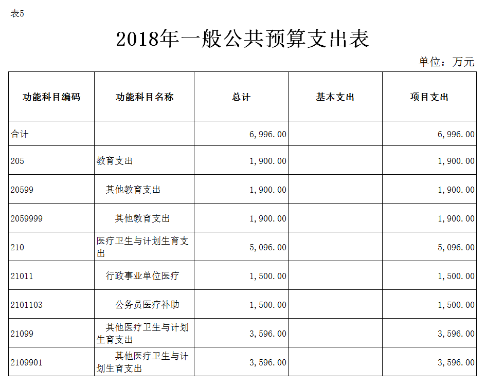 2018年一般公共预算财政拨款(补助)预算数6996万元,安排情况如下: