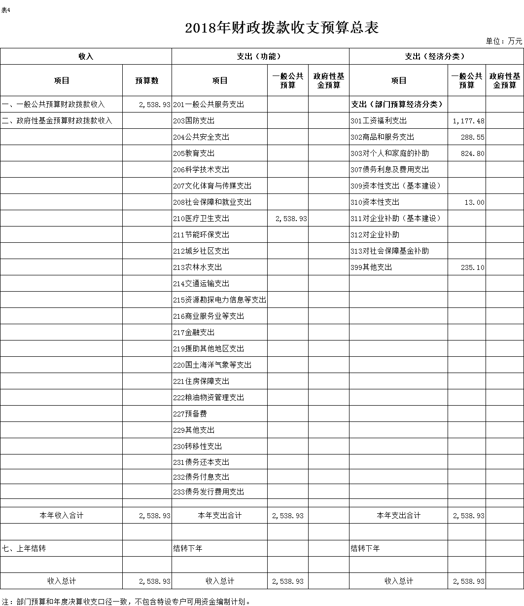 表 4.2018 年财政拨款收支预算总表