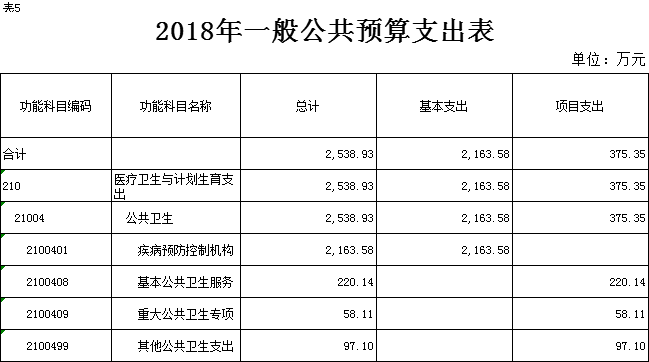 表 5.2018 年一般公共预算支出表