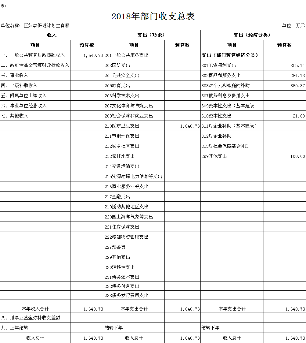 表 1.2018 年部门收支预算总表