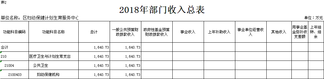 表 2.2018 年部门收入预算总表