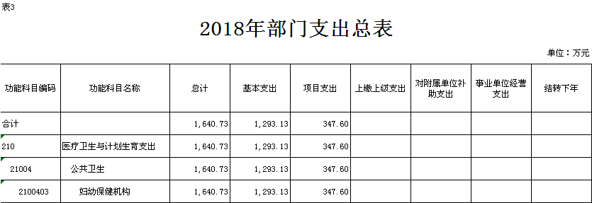 表 3.2018 年部门支出预算总表