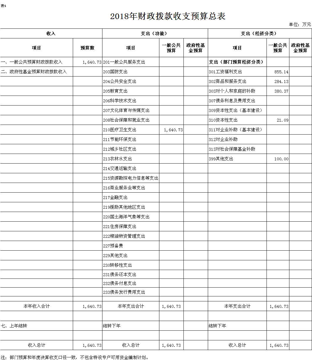 表 4.2018 年财政拨款收支预算总表