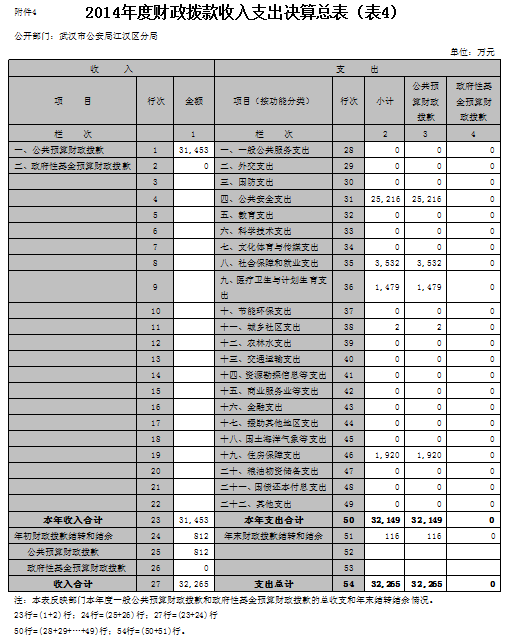 第三部分、武汉市公安局江汉区分局2014年度部门决算表