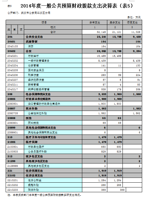 2014年度武汉市公安局江汉区分局部门决算