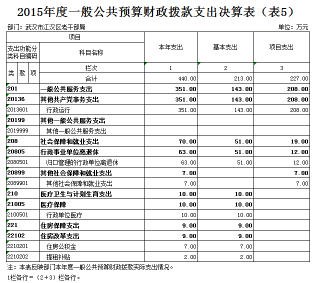 武汉市江汉区老干部局2015年度部门决算情况说明