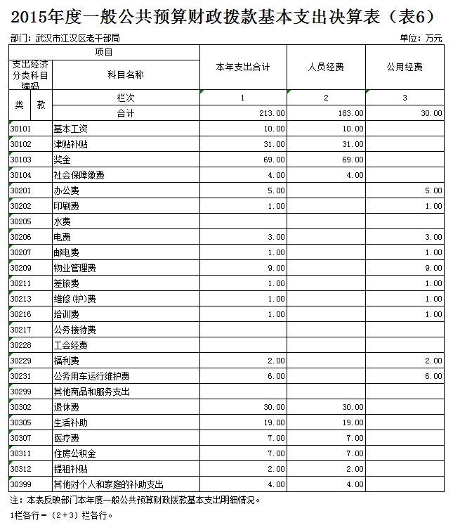 第二部分、武汉市江汉区老干部局2015年度部门决算情况说明