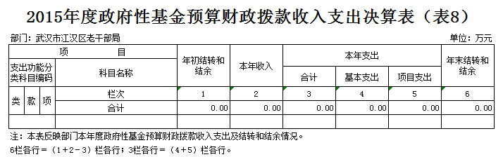 | 标 题 | 2015年江汉区老干部局部门决算 | ||