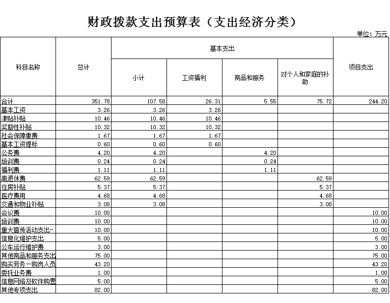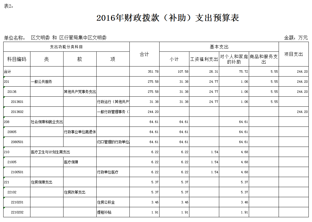 2016年财政拨款(补助)预算数351.78万元,安排情况如下: