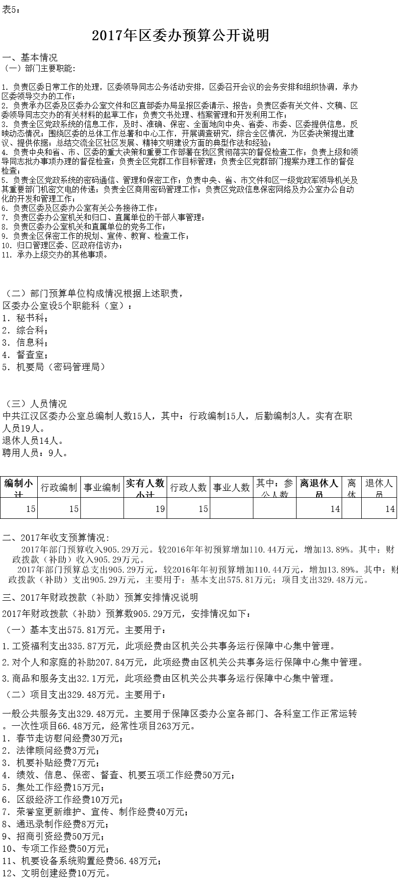 | 标 题 | 中共江汉区委办公室2017年度部门预算公开说明 | ||