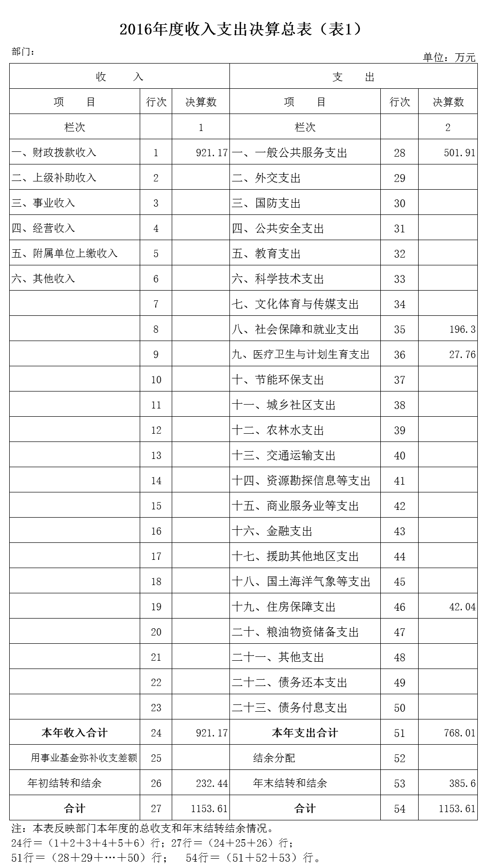2016年度收入总计 1153.61 万元,支出总计 1153.61 万元。与2015年相比,收入增加 700.08 万元,增加的主要原因是往年在集中公开,今年所有的全部在本单位公开。支出增加 932.52 万元,增长主要原因是增长的款项在集中支付,但是在本单位全部公开。