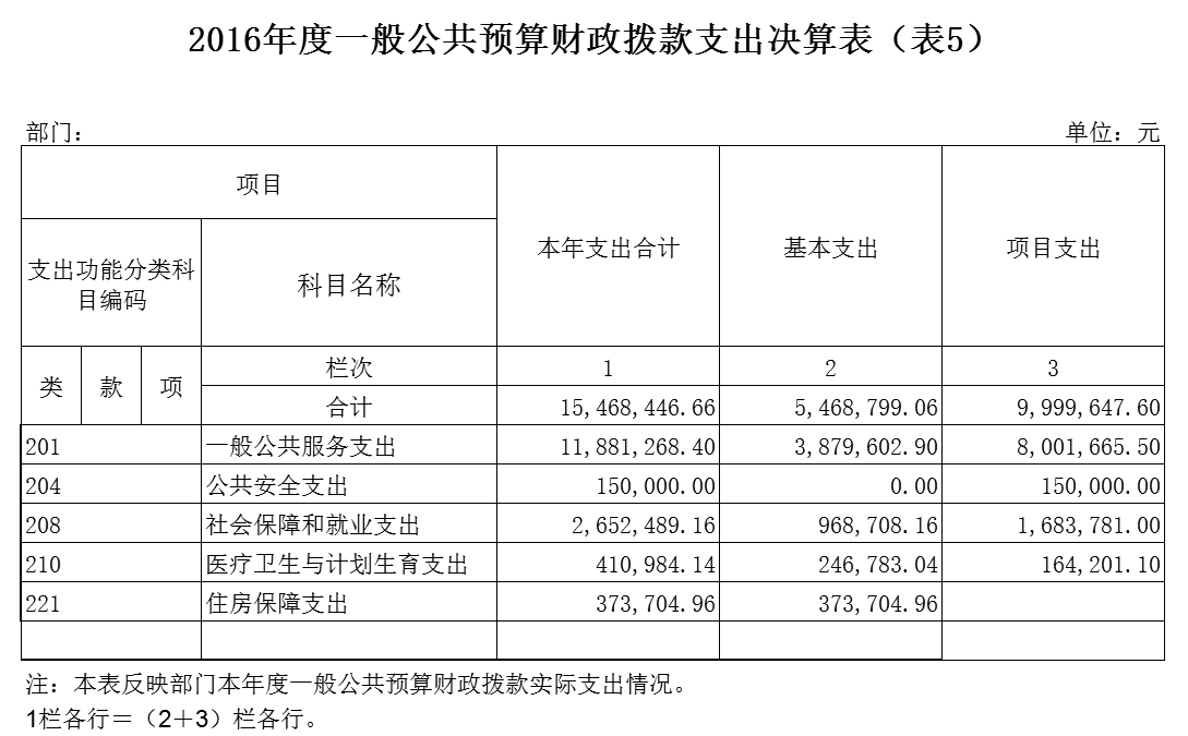 五、2016年度一般公共预算财政拨款支出决算情况