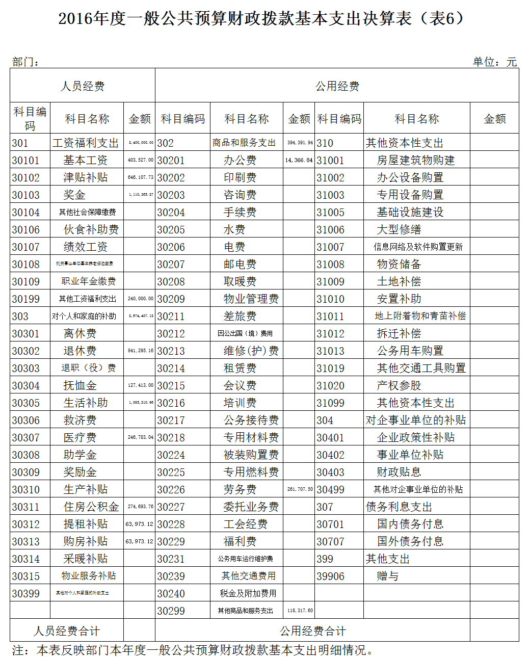 六、2016年度一般公共预算财政拨款基本支出决算情况