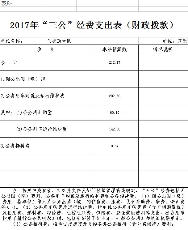 2017年江汉区交通大队预算(及“三公”经费)公开文字说明及表格