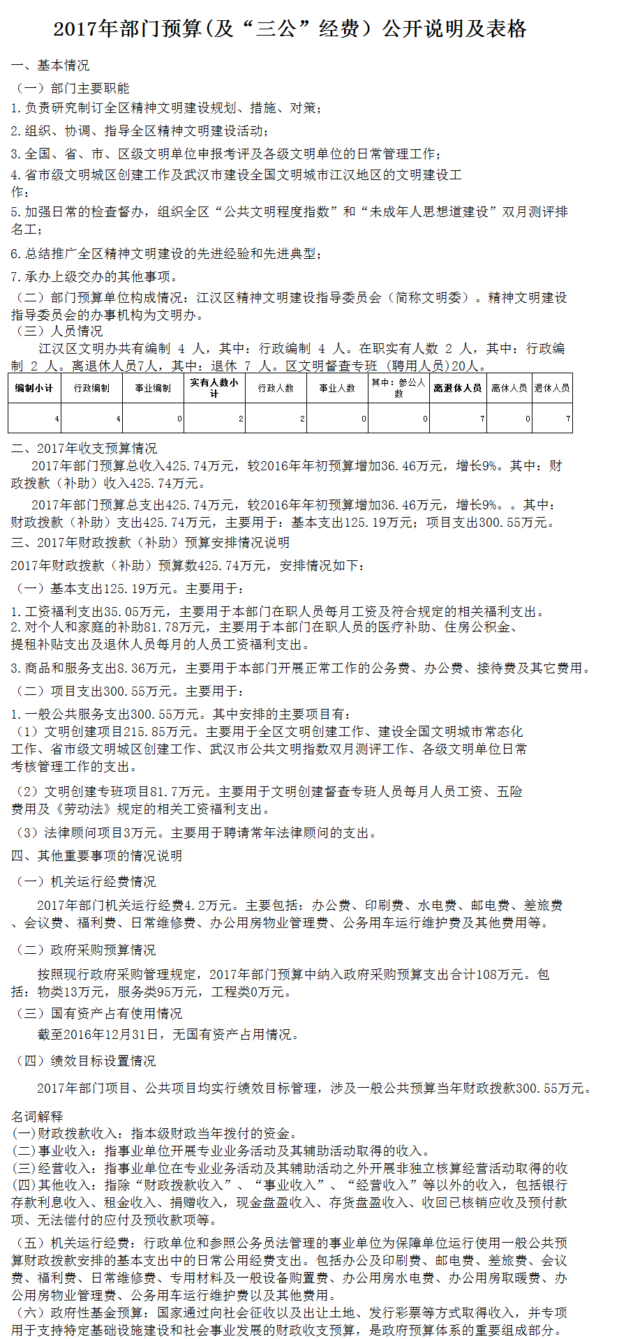 | 标 题 | 江汉区文明办2017年度部门预算公开说明 | ||