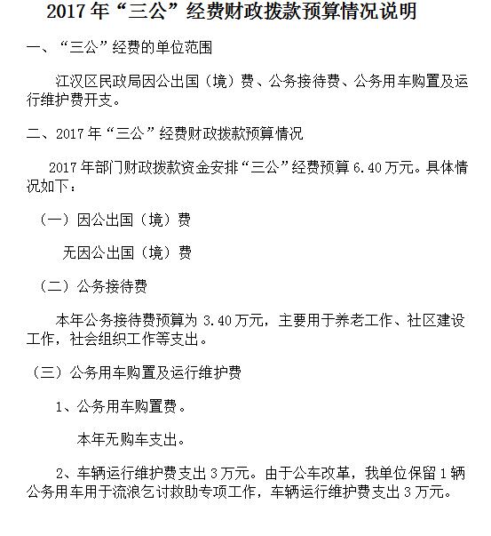 | 标 题 | 武汉市江汉区民政局2017年部门预算(及“三公”经费)公开文字说明及表格 | ||