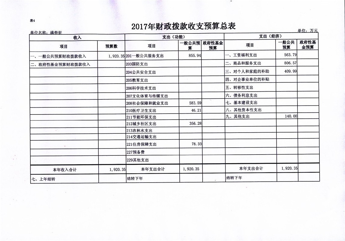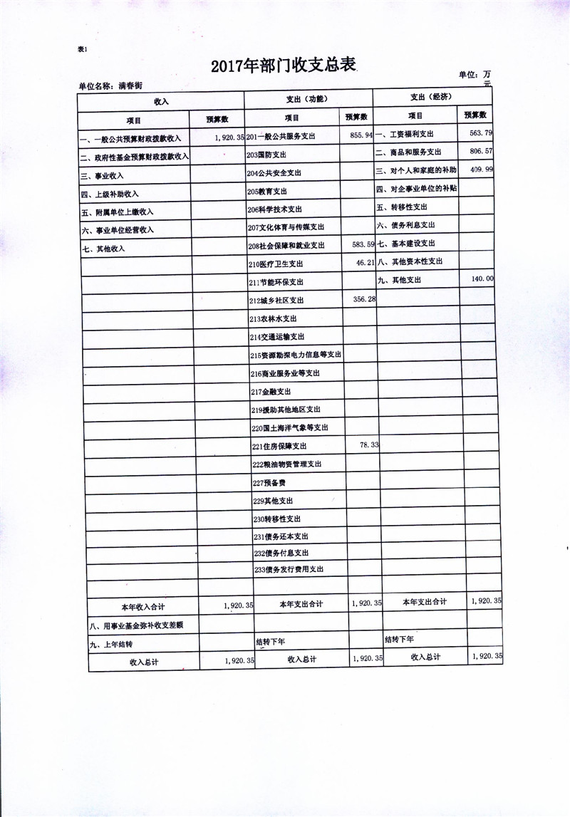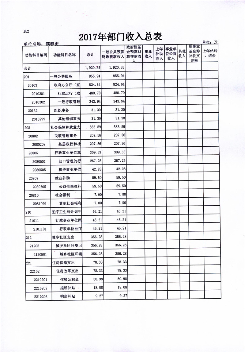 满春街2017部门预算信息公开