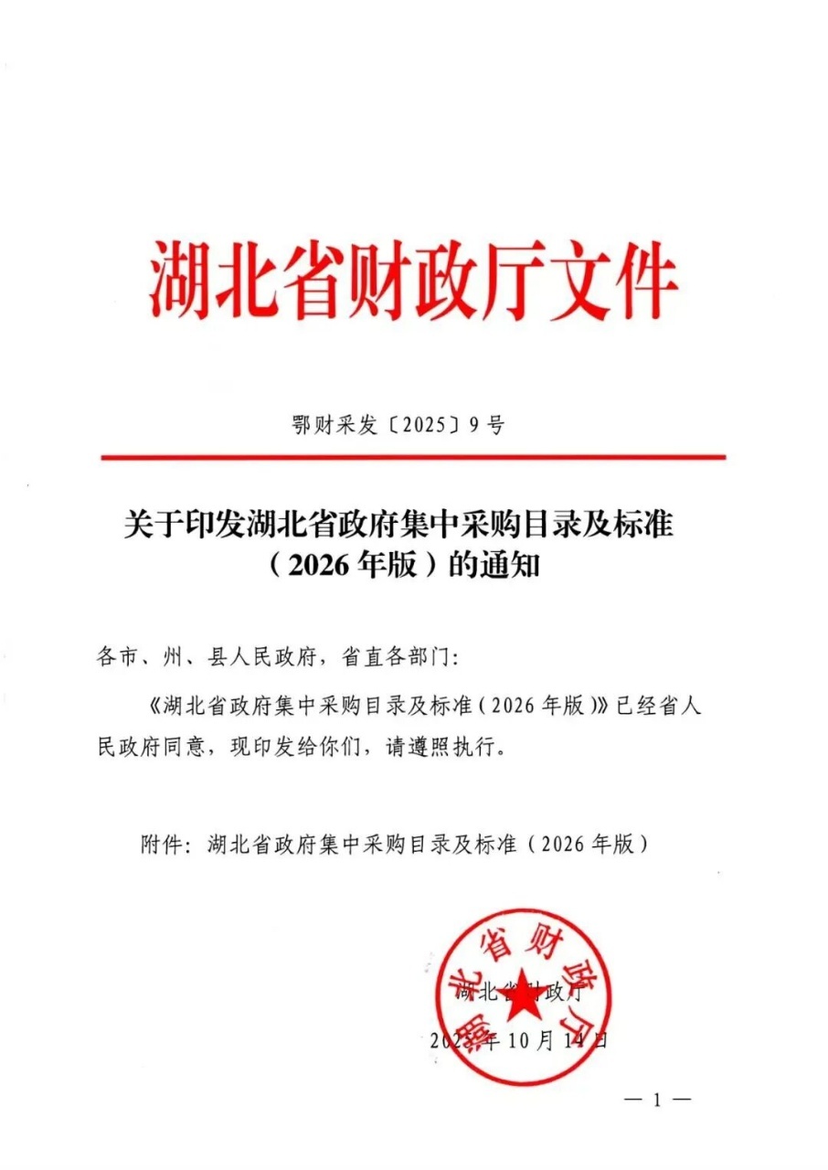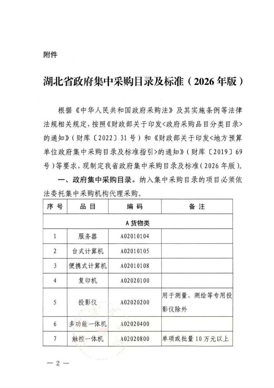 标 题 | 关于印发湖北省政府集中采购目录及标准(2026年版)的通知 |