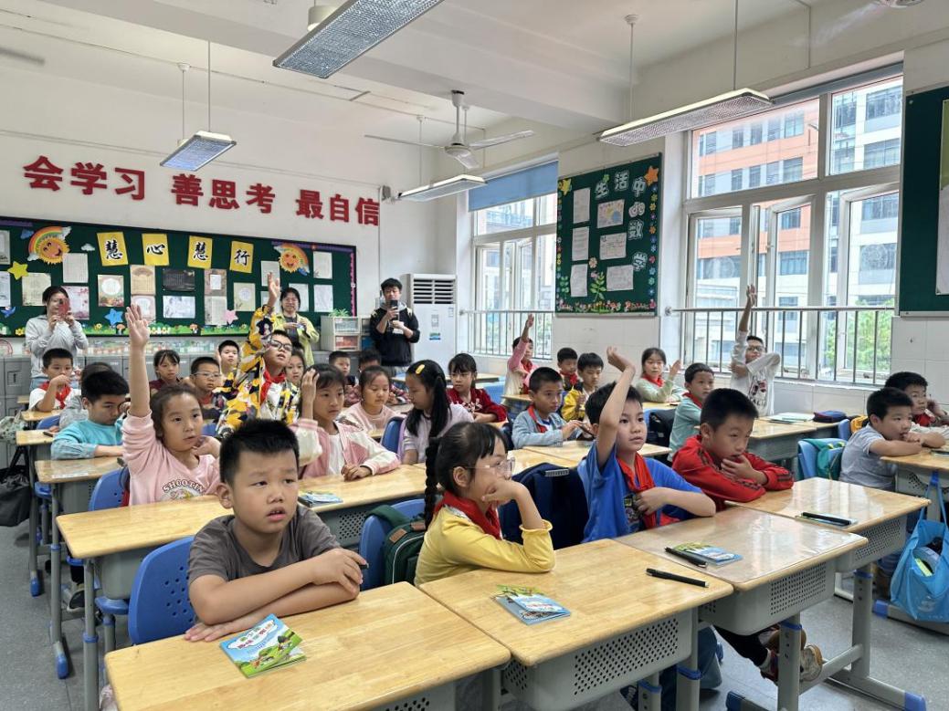 活动一开始通过播放趣味普法短视频,吸引了学生们的注意力。随后,先锋队队员董丹以《防范校园欺凌》为主题开展了普法宣讲,她从小朋友们熟悉的动画卡通人物引入,与小朋友们交流讨论什么是校园欺凌、如何应对校园欺凌,增强了学生们的法律意识与安全保护意识。