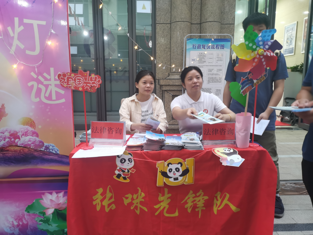 在中秋国庆佳节来临之际,为了进一步将传统民俗文化与普法宣传相结合,弘扬优秀传统文化,感受法治文化魅力,营造平安和谐的节日气氛,9月27日,江汉区民权街办事处、民权司法所、民权街派出所联合在民权街王家巷社区武汉长江航运小区举办“中秋奇妙游园会”暨“送法进社区”猜谜观影学法活动,为欢乐喜庆的节日增加别样法治元素。张咪政法先锋队成员到场支持。