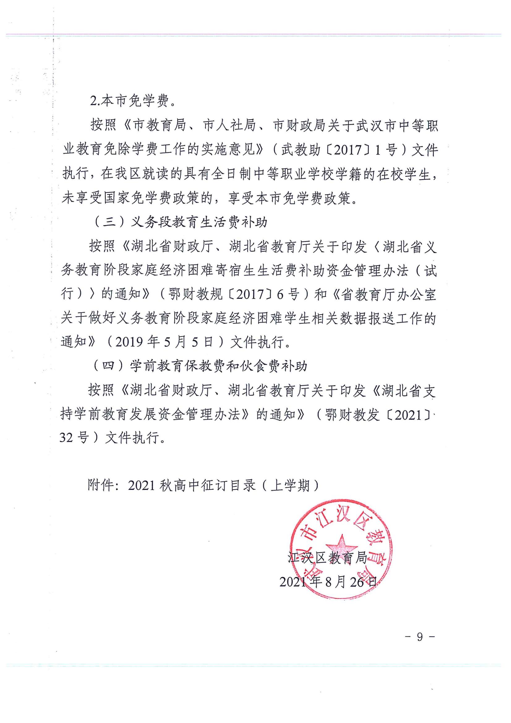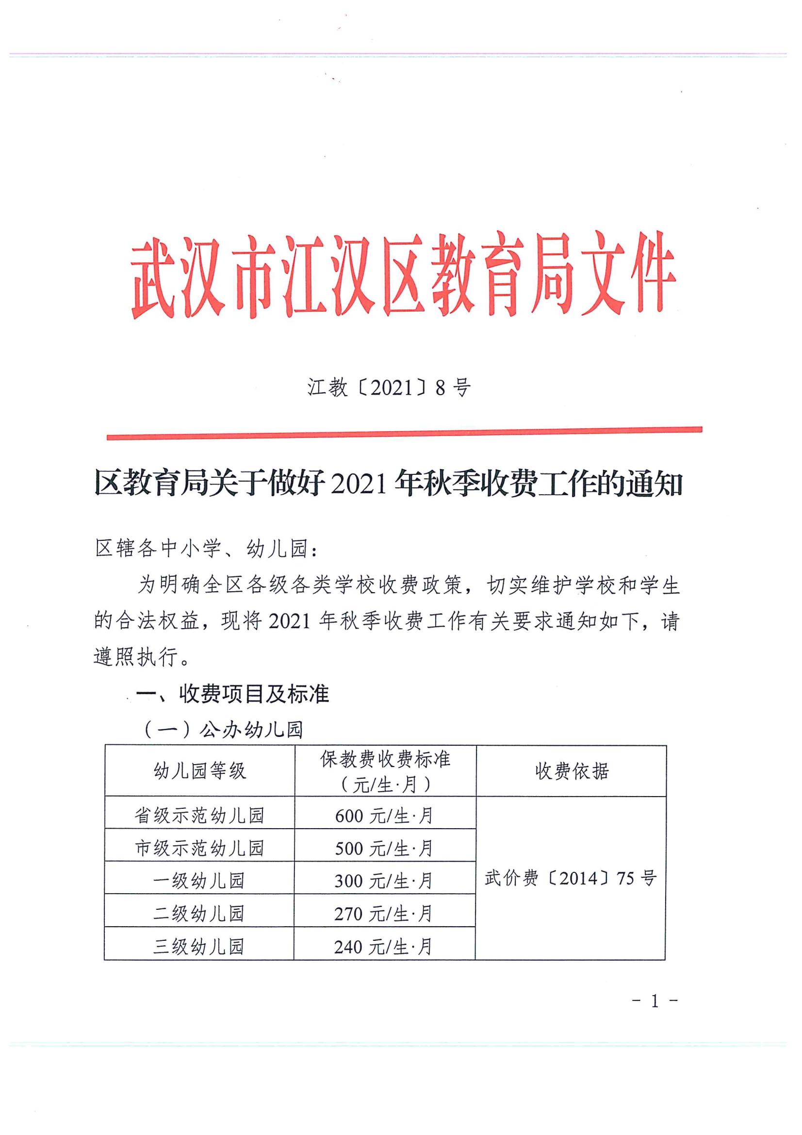 | 标 题 | 江汉区教育局关于做好2021年秋季收费工作的通知 | ||