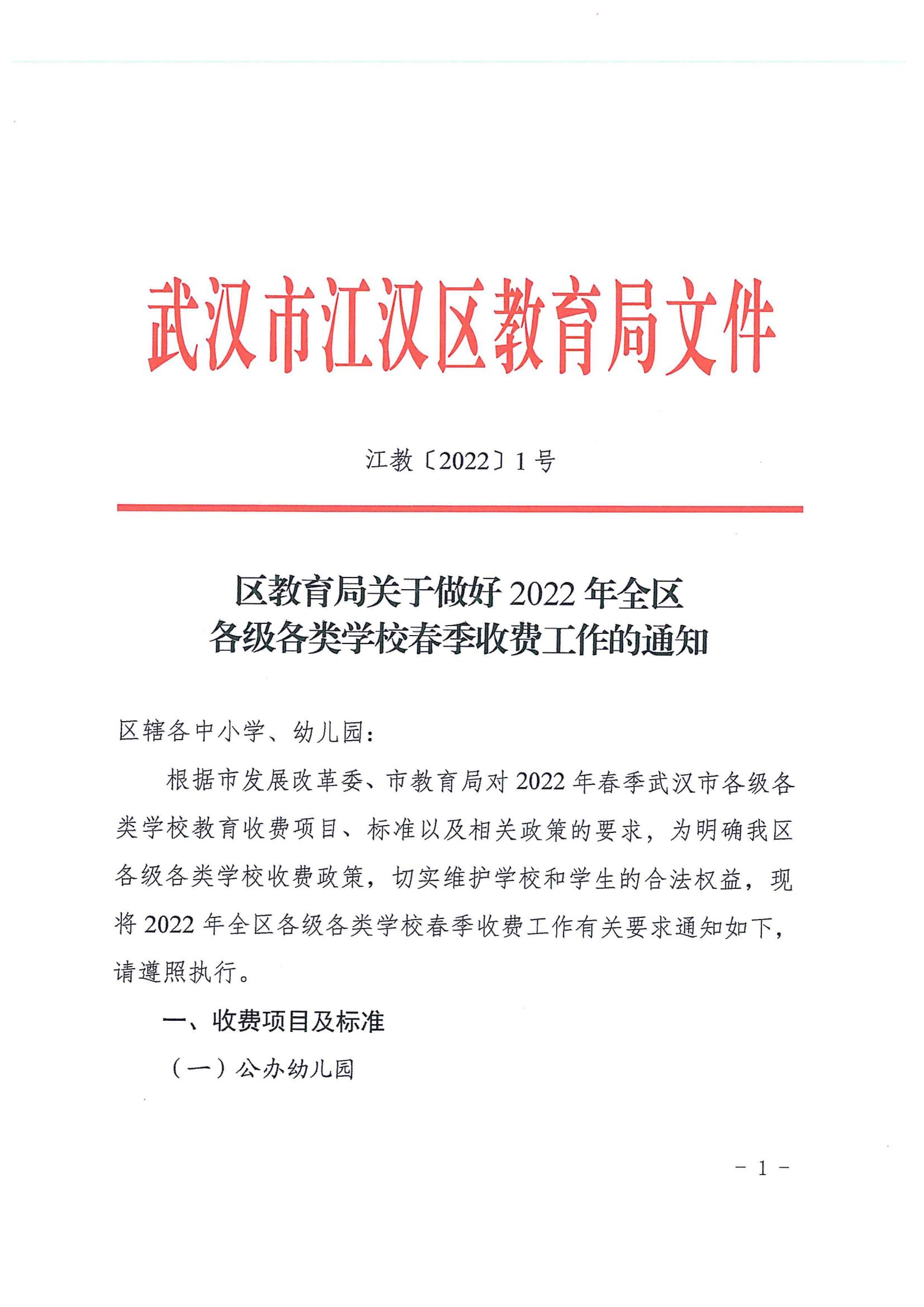 | 标 题 | 江汉区教育局关于做好2022年全区各级各类学校春季收费工作的通知 | ||