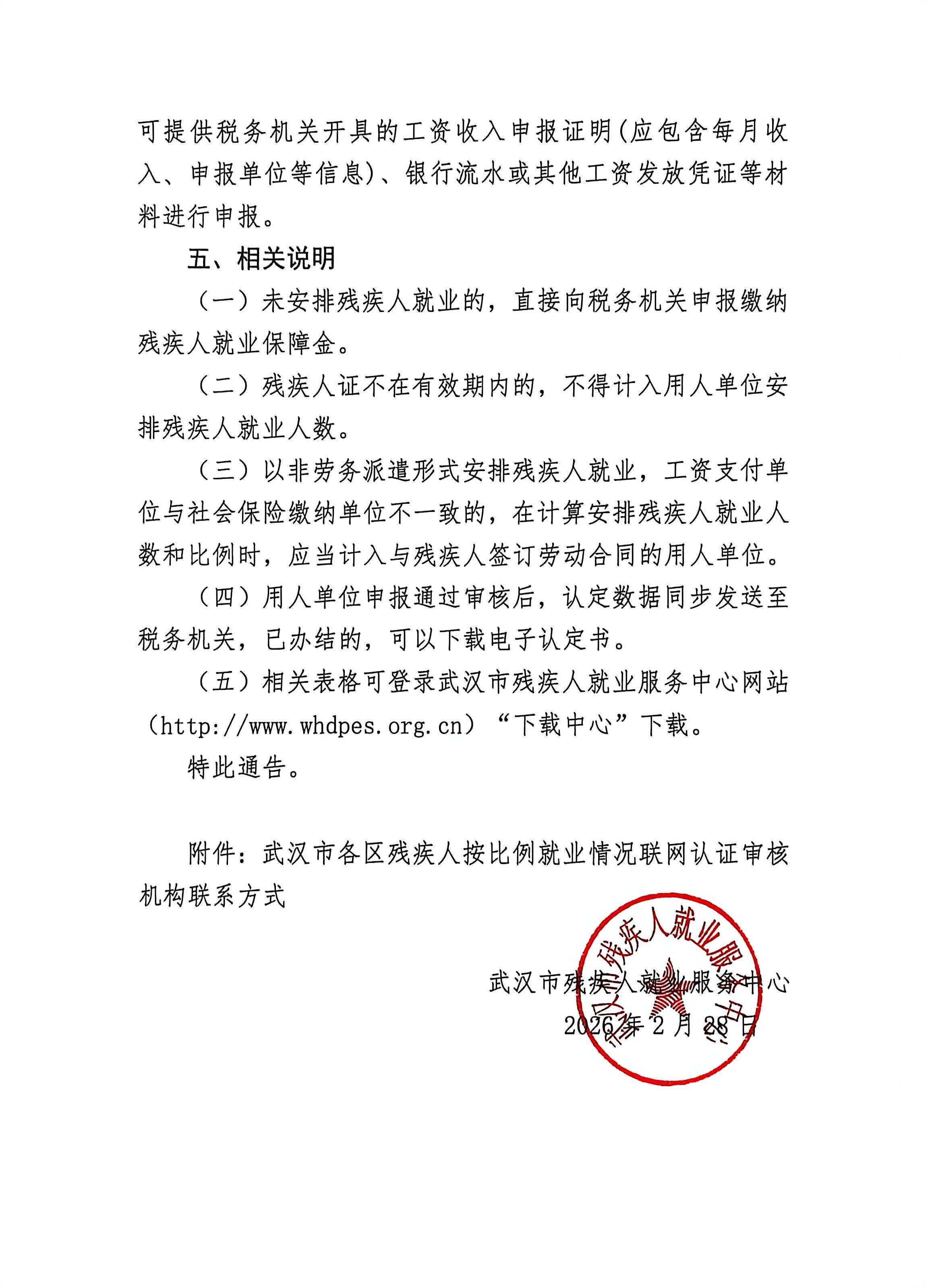 | 标 题 | 关于开展2026年武汉市残疾人按比例就业情况联网认证工作的通告 | ||