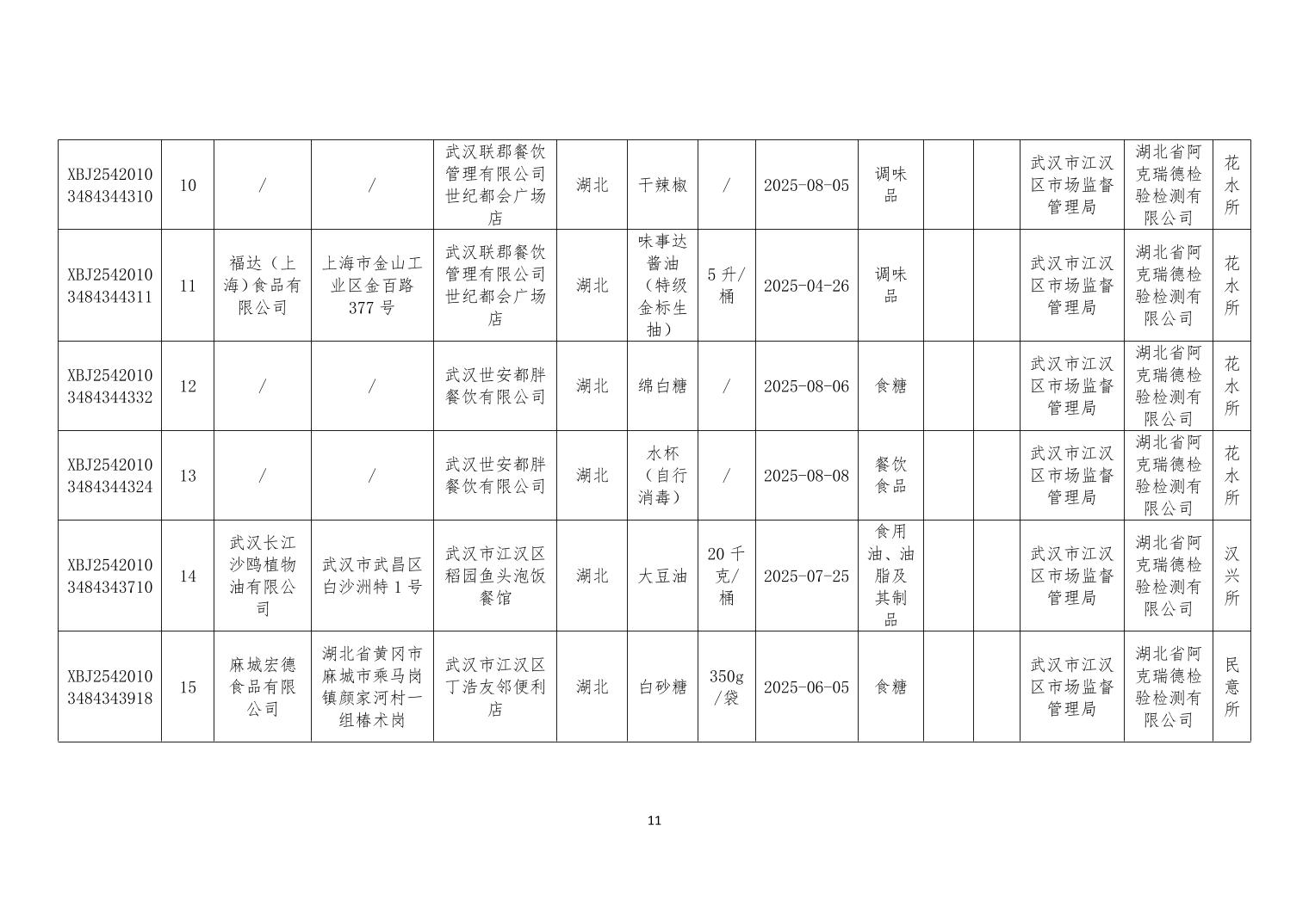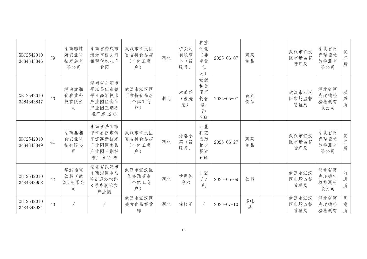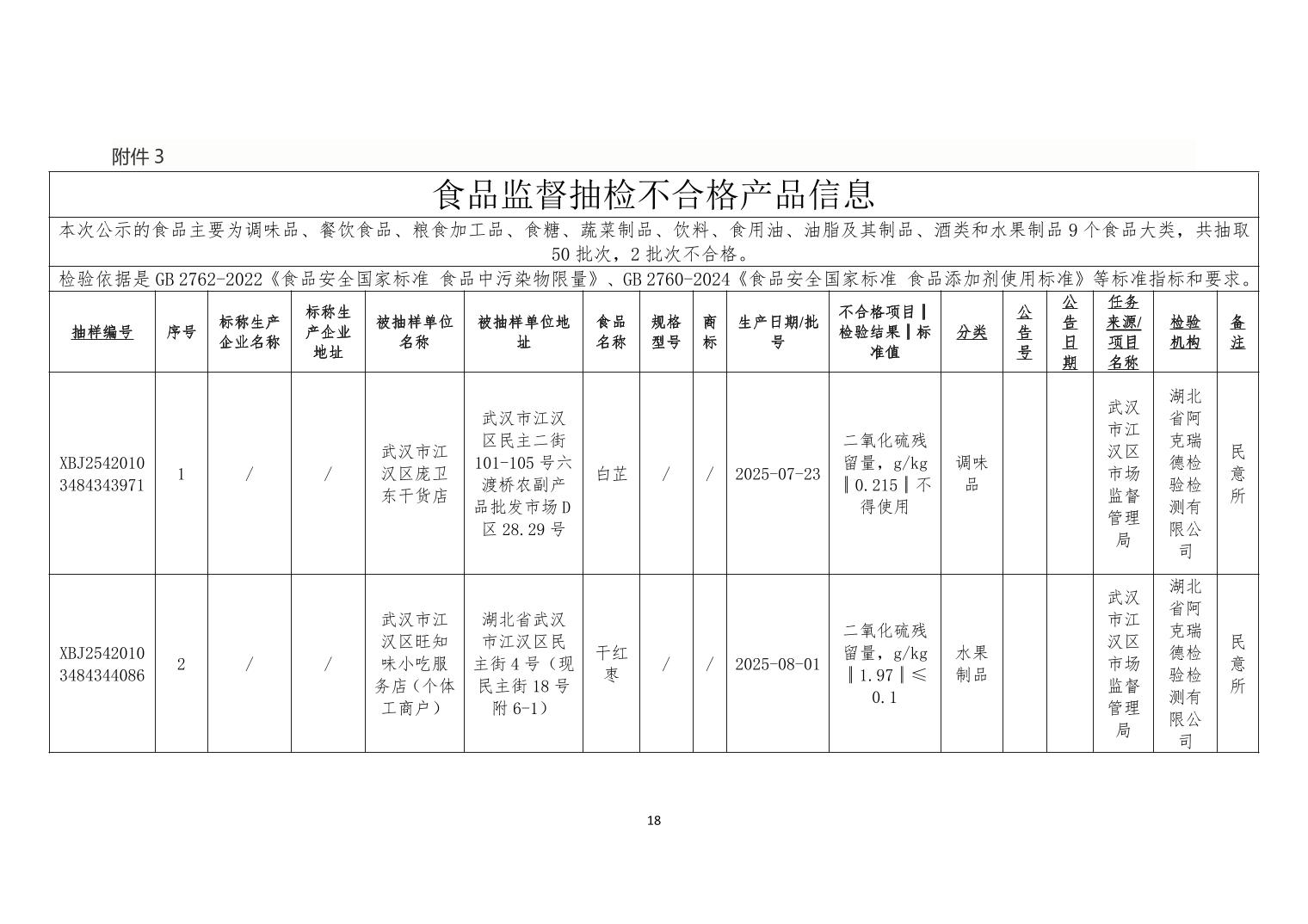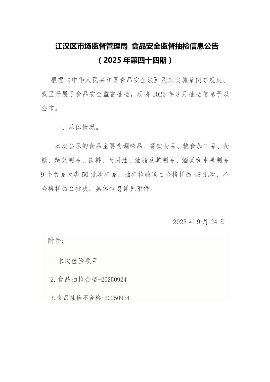 标 题 | 江汉区市场监督管理局食品安全监督抽检信息公告(2025年第四十四期) |