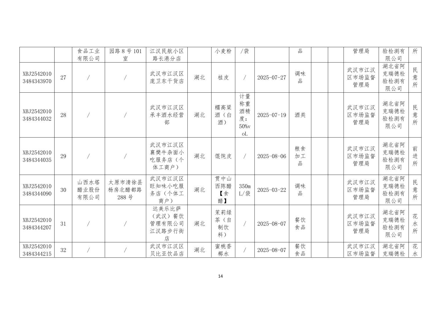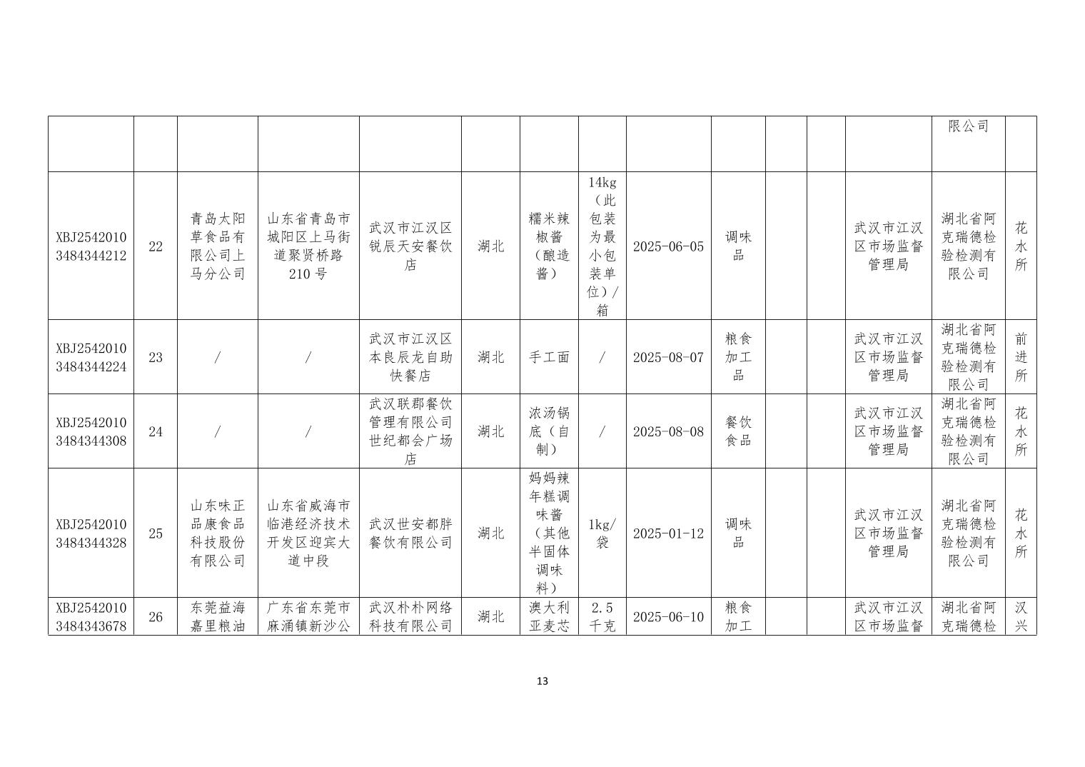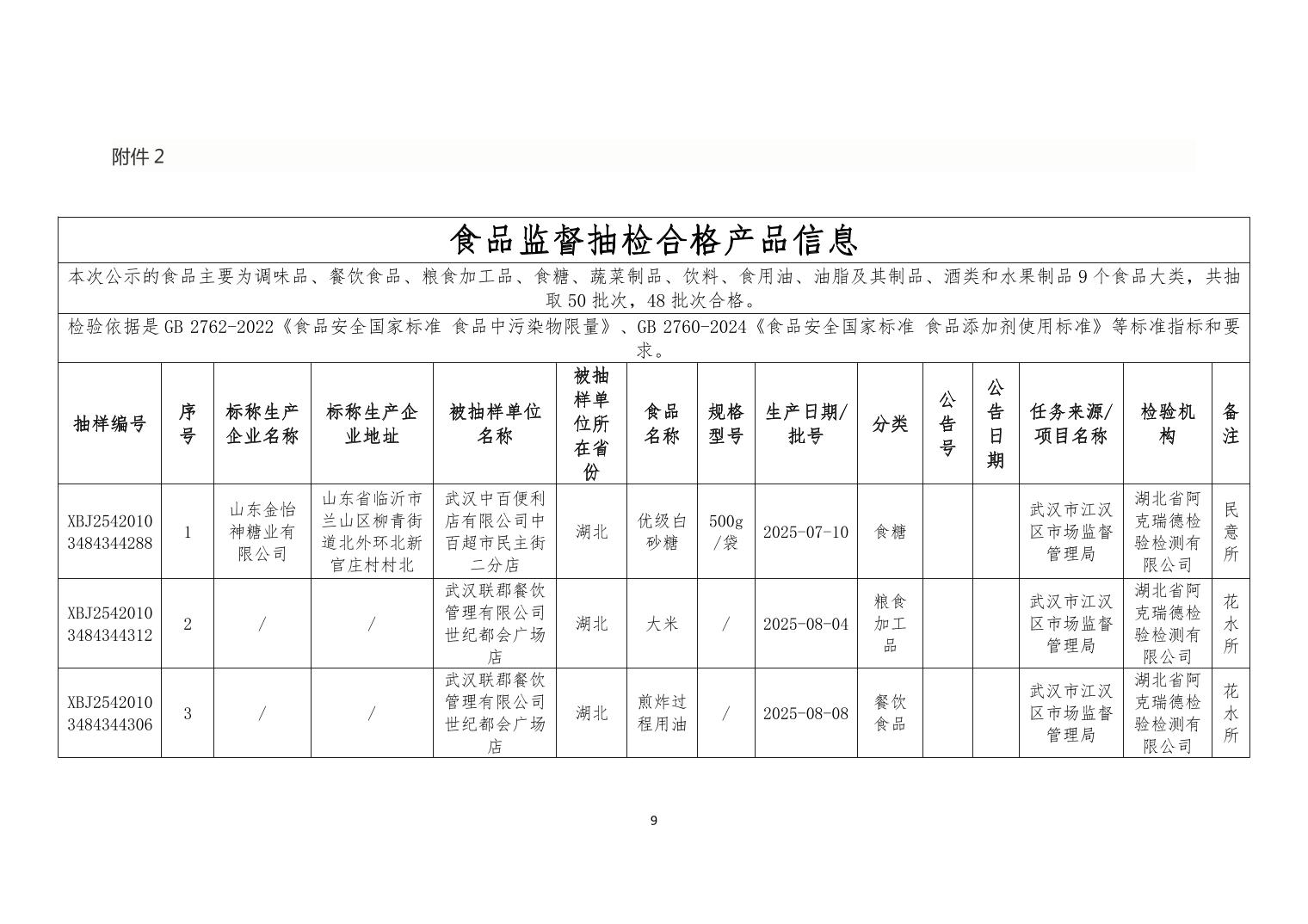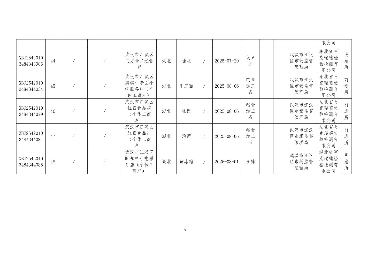 标 题 | 江汉区市场监督管理局食品安全监督抽检信息公告(2025年第四十四期) |
