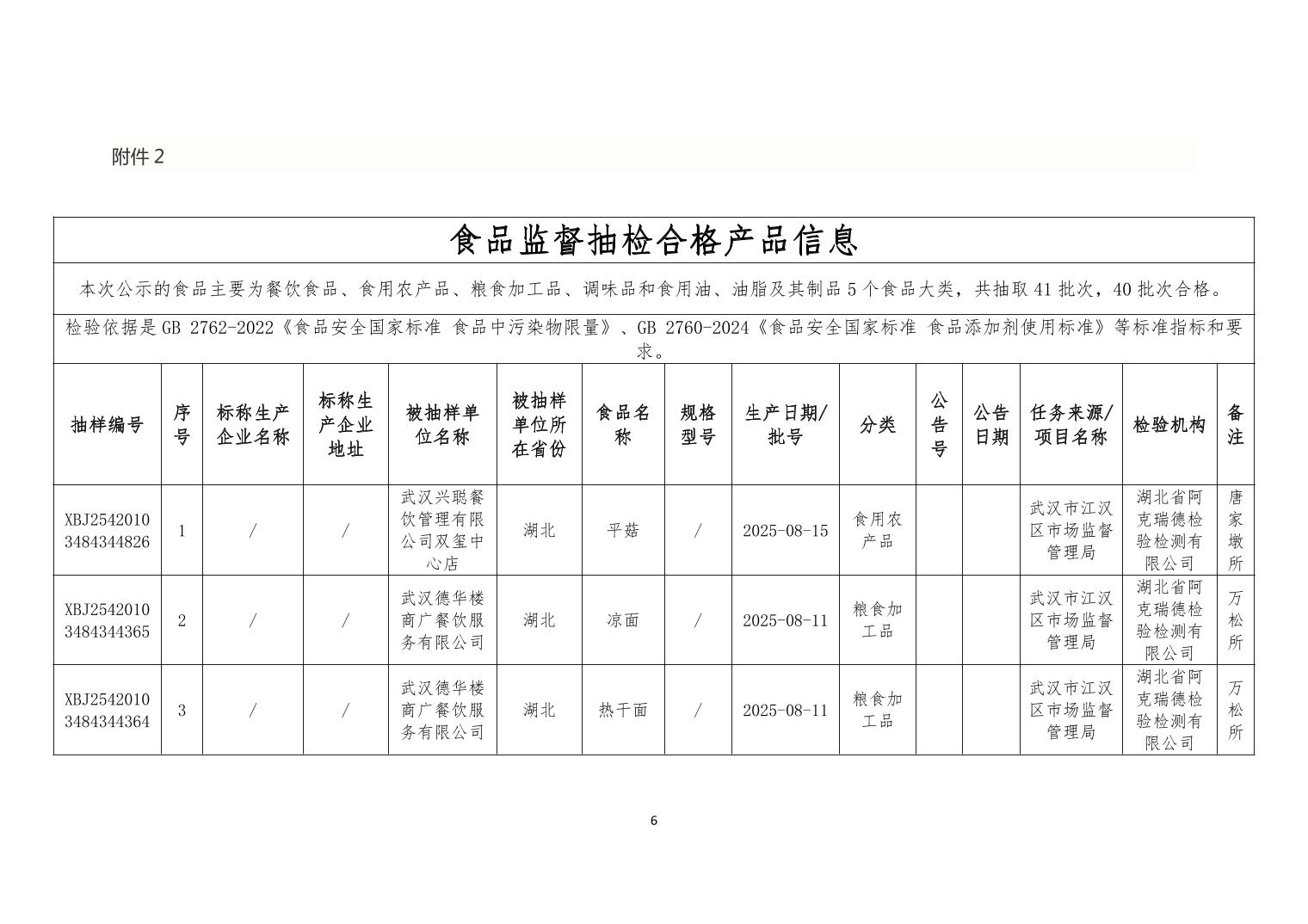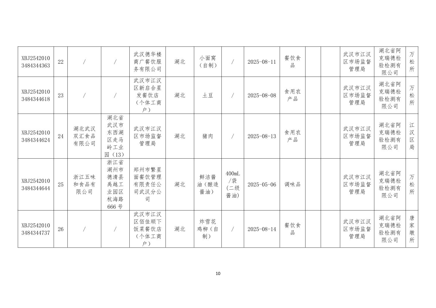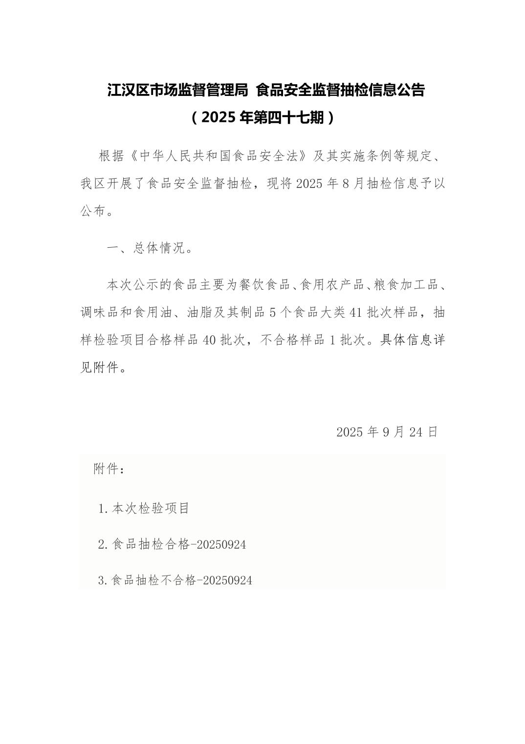 标 题 | 江汉区市场监督管理局食品安全监督抽检信息公告(2025年第四十七期) |